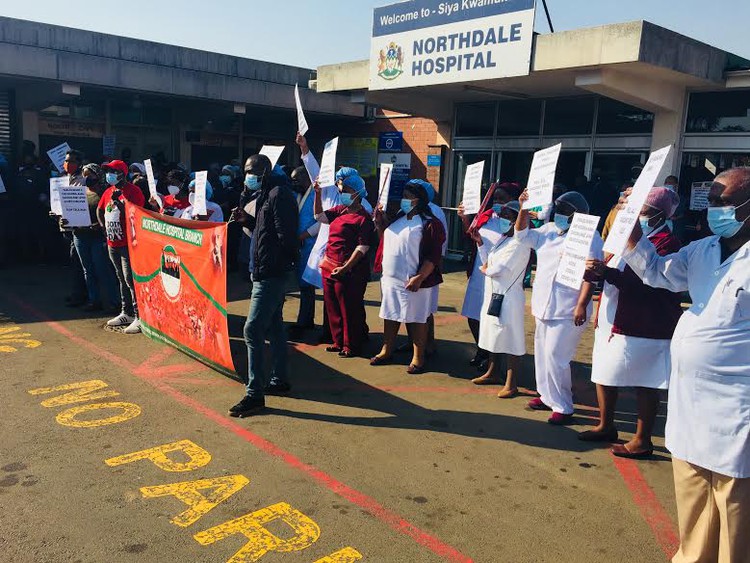 Staff at Northdale Hospital picketed for the second time in a week. Photo: Nompendulo Ngubane