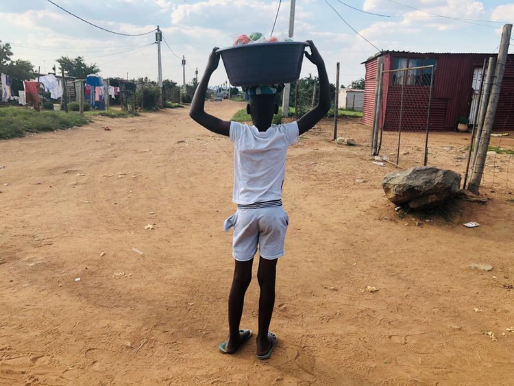 In Extension Six, nine-year-old Tommy is making his rounds with a small dish on his head. In it are small packets of vegetables worth R5 each. He misses the days when he could play with his friends; now he has to sell the goods to help his mother put food on the table. This has been his life for the past six months.