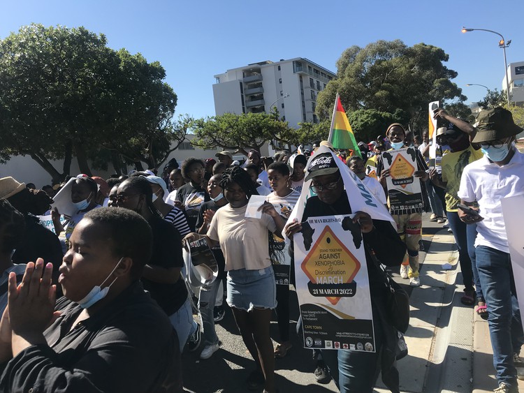 About 100 people affiliated to 15 organisations marched through Cape Town city centre on Monday to protest against ongoing attacks on foreign nationals across the country. Photo: Tariro Washinyira