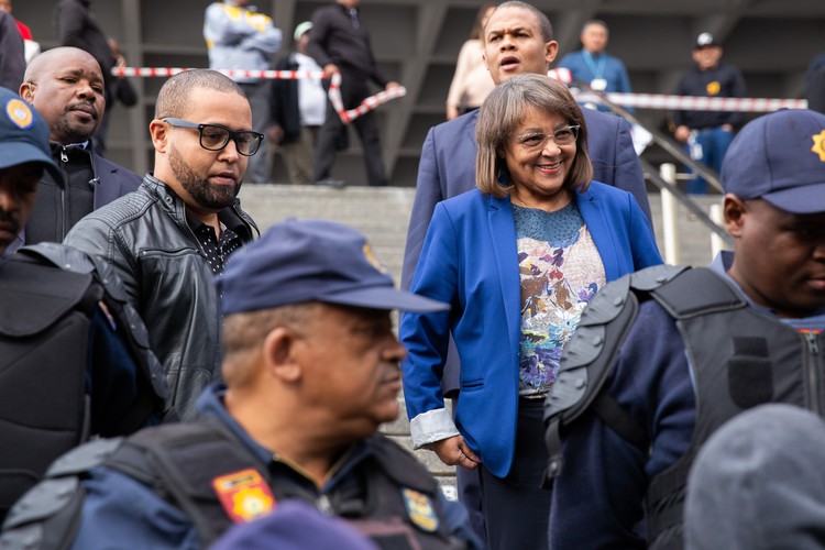 Mayor Patricia de Lille addressed the media and then the protesters. Photo: Ashraf Hendricks