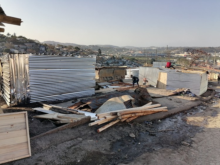 A month after more than a thousand shacks were gutted in a fire at Kennedy Road informal settlement in Durban, many of the affected families are yet to rebuild their homes.