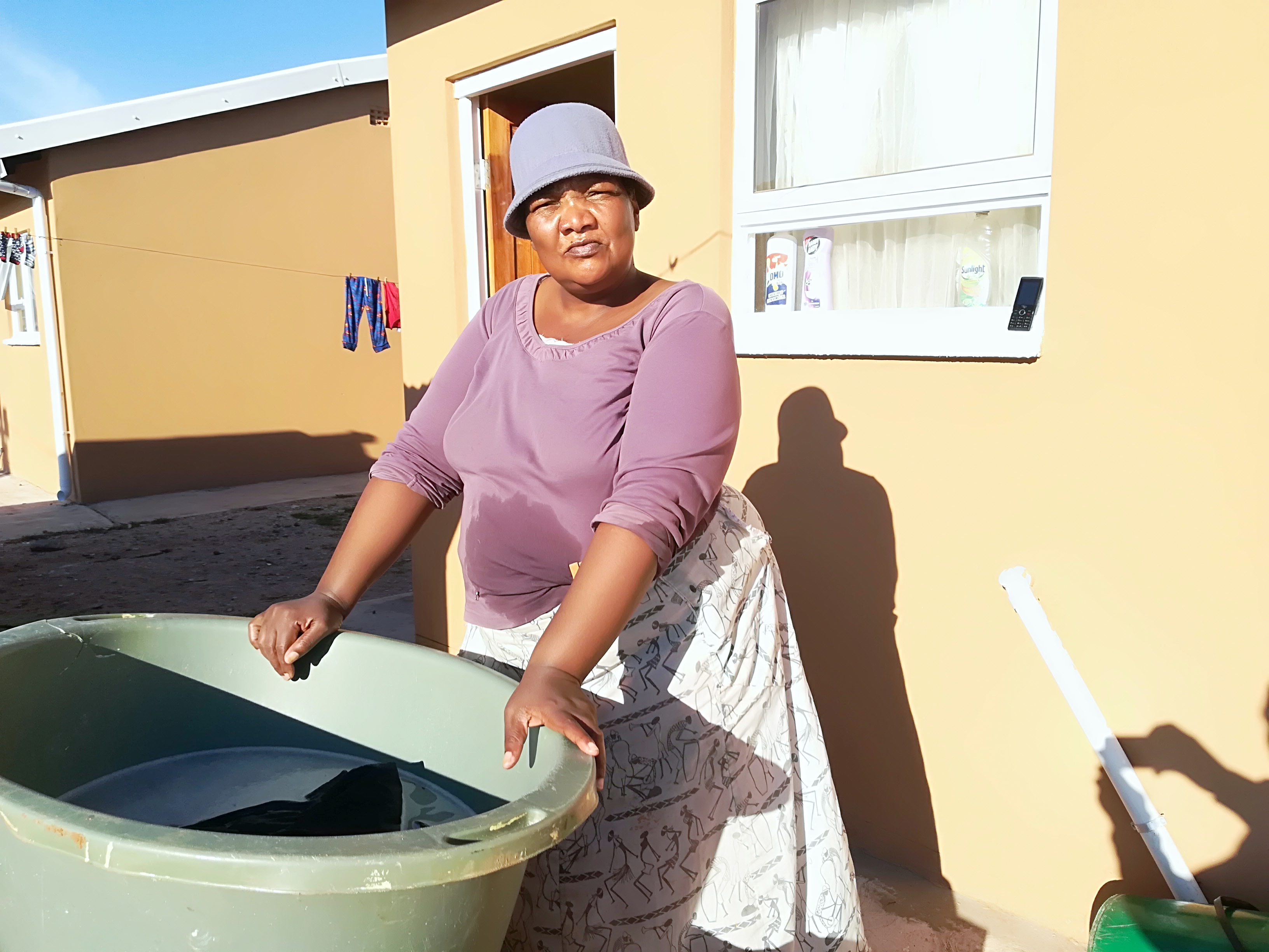 Nombini Takisi does her washing at her new house. Photo: Thamsanqa Mbovane