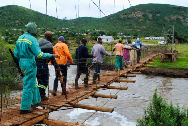 Villagers cross the Umzimvubu River on the “Tebetebe bridge”.