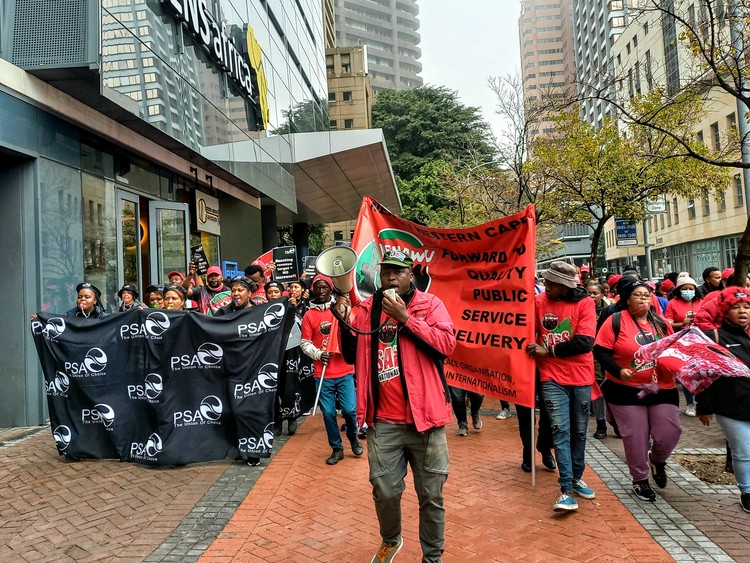 In Pretoria, about 400 workers and union officials gathered in Madiba Street before marching to the National Treasury office and to the revenue service’s head office.