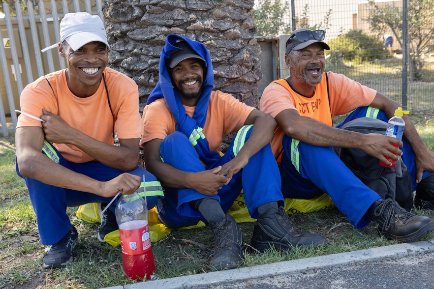 City of Cape Town Expanded Public Works Programme contract workers take a much-needed break in the shade of a tree. Pictured from left to right: Wilhelm Wend, Bryan Arries and Marius Moerat, all from Ocean View. Photo: Dave Fisher