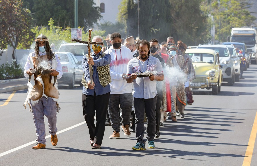 Hessequa leader and chaplain Reggie Boesak led the procession carrying the skull in its casket.