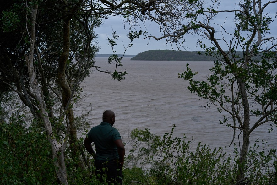 Nkanyiso Mduli looks out across Lake St Lucia from a lookout point used by local fishers.