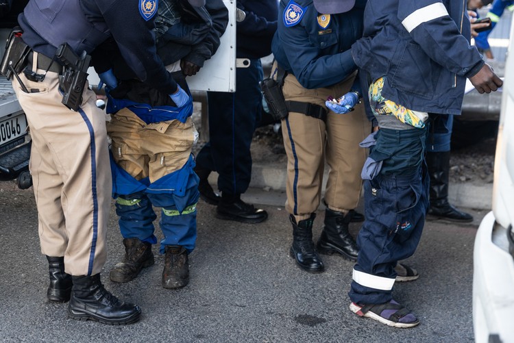 Law enforcement officers conducted searches of homeless people. Photo: Ashraf Hendricks