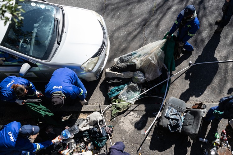 Homeless people were evicted from several sites in Cape Town’s city centre on Thursday. This follows an order granted by the Western Cape High Court in June to move hundreds of people living on the streets. Photo: Ashraf Hendricks