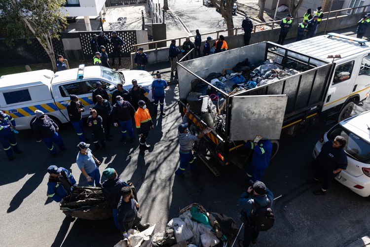 The belongings of homeless people sleeping next to Mill Street were put into a removal truck. Photo: Ashraf Hendricks