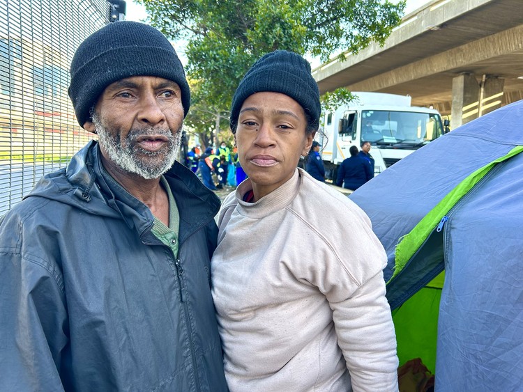 Partners Janieldine Maulty and Anthea Abrahams, who have been living on the street for years, were among those who were moved with their tent and other belongings from the Foreshore on Thursday. They told GroundUp that they were worried about losing important documents such as IDs.