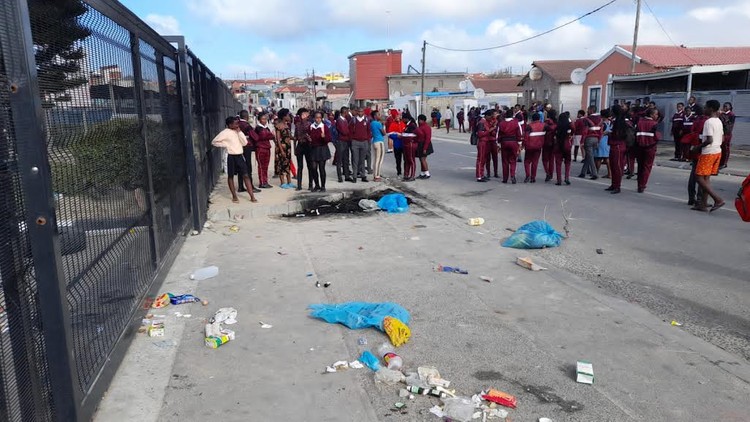 Learners at Kwamfundo Senior Secondary School in Khayelitsha burned rubbish during a protest about the cancellation of extra classes. Photo: Nombulelo Damba-Hendrik