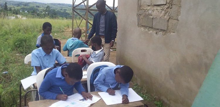 Some learners at Inkosi Sipho Primary School in Ndwedwe, north of Durban are being taught outside because the two-roomed school does not have enough space to accommodate all 70 learners. Photo: Nokulunga Majola