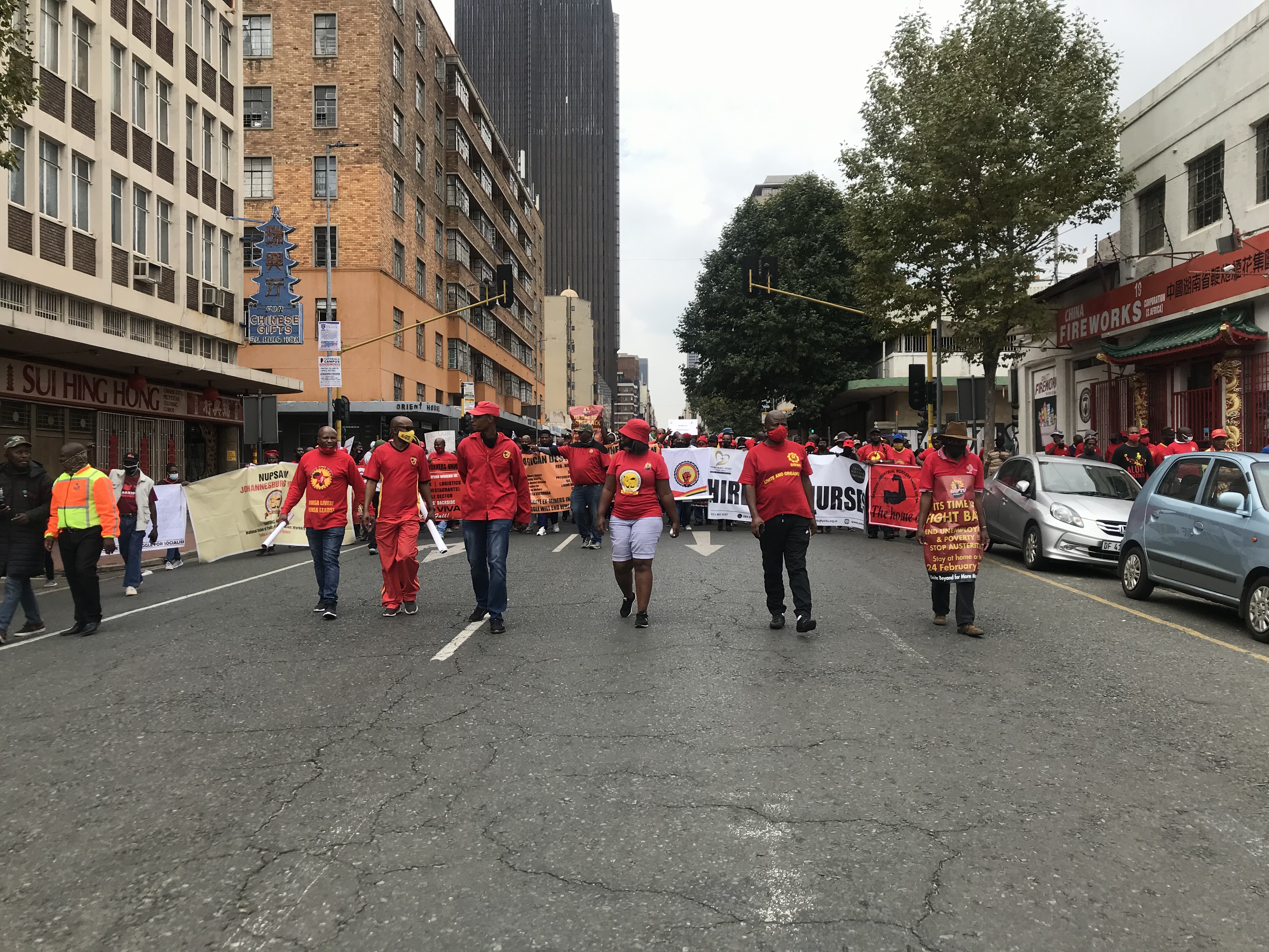 SATFU members marching to join the protest at Central Police Station in Johannesburg on Wednesday. Photo: Masego Mafata