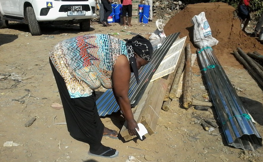 Nikelwa Mathanzima gathering material so she can rebuild part of her home that was destroyed by the fire. She lost her job as a domestic worker during the Covid-19 lockdown last year and is currently unemployed.