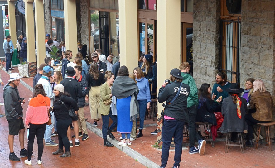 Day 143 Lockdown. With Covid restrictions dropping to Level 2 tomorrow, some businesses can resume activities for the first time in months. This one already seemed to be doing really well. The baristas were kept particularly busy, probably due to the variety on offer – some of the coffee came from the fridge while some was sold with a complimentary Schweppes. This photo is part of a series on Cape Town under lockdown.