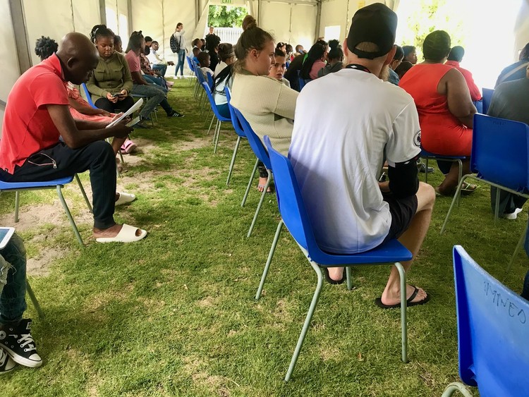 Parents wait at the Metro North Education offices in Cape Town to get help to find school places. Photo: Tariro Washinyira