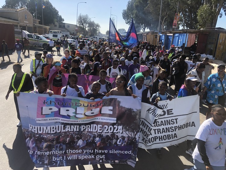More than 150 people with rainbow flags and colourful costumes marched through the streets of Gugulethu and Nyanga at the weekend to mark the 11th year of the Khumbulani Pride.