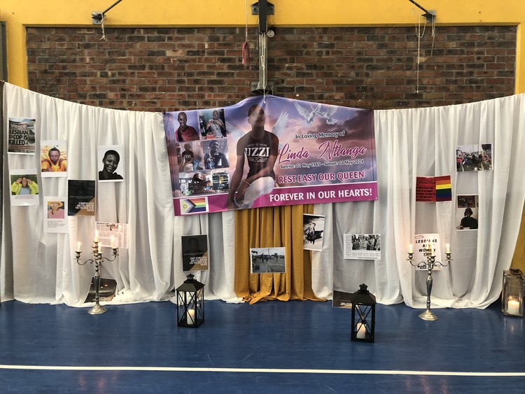 The Zolani hall was decorated in rainbow coloured curtains. A memorial wall with banners, posters and news articles was dedicated to victims of hate crime.