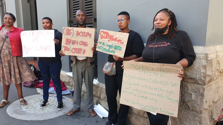 Some of Singabalapha informal settlement residents picketing outside the Western Cape High Court on Monday.