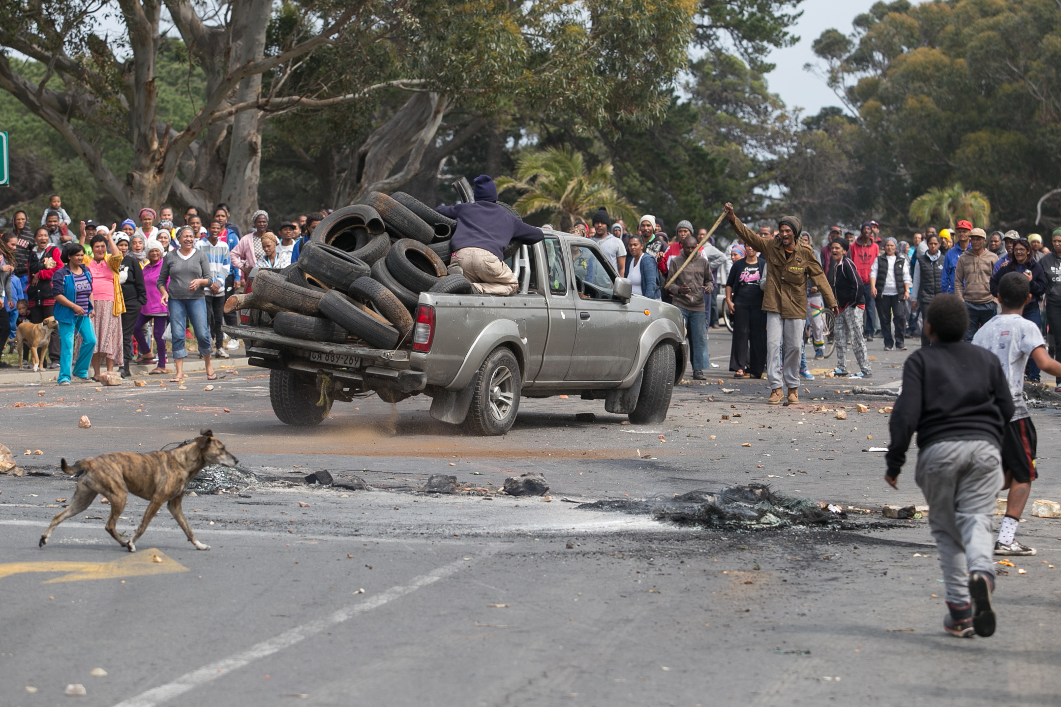 The purpose of the protest, which started peacefully on Thursday morning, was to demand that police take action to reduce the high level of crime in the township. Throughout the day discussions took place between public order police, the local neighbourhood watch, pastors and community representatives. But there appeared to be no resolution as barricades continued to burn.
