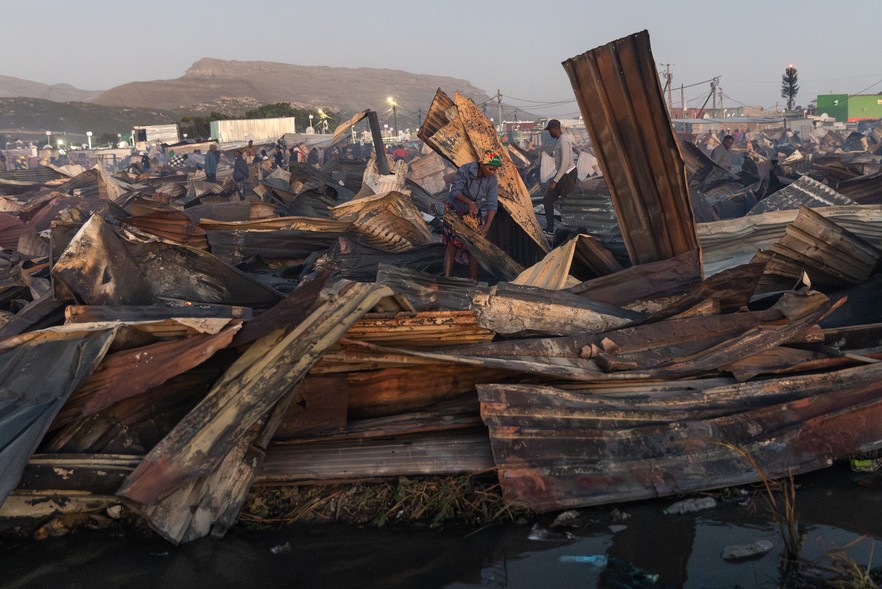Fire victims sort through their charred belongings after a blaze destroyed more than 100 homes near the wetlands in Masiphumelele on Tuesday afternoon. Photos: Ashraf Hendricks