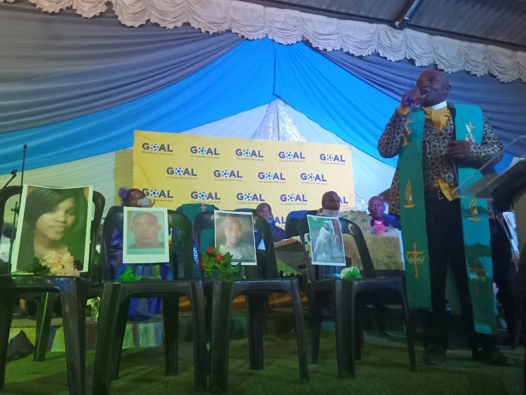 Photos of the people killed were displayed at the memorial at the African Gospel Church in Marikana.