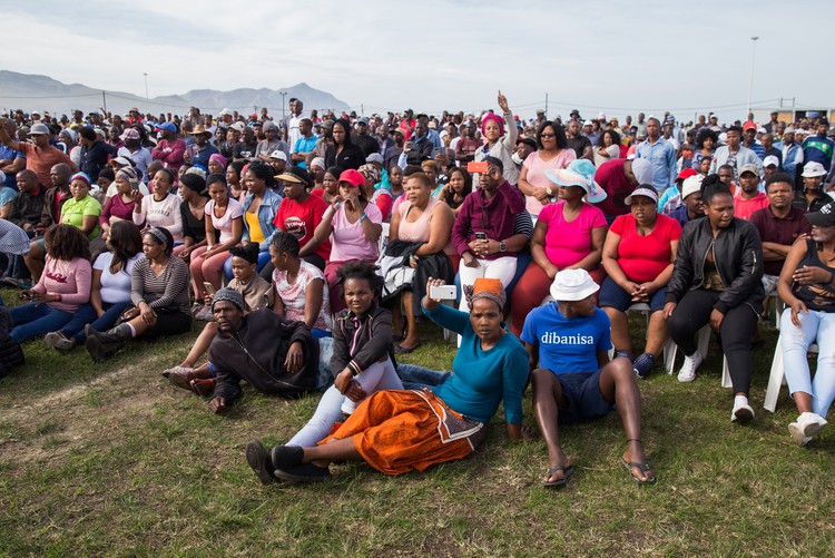 Hundreds of Zwelihle residents watch Minister Bheki Cele’s address.