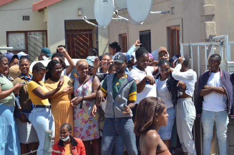 Some of the job seekers, who were scammed out of R800 by a cleaning company, picket outside the home of one of the owners demanding their money back. The owner told GroundUp that she fled Cape Town. Photo: Nombulelo Damba-Hendrik