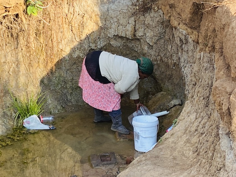 Resident Joyce Masenya collects water from a stream flowing through the settlement.