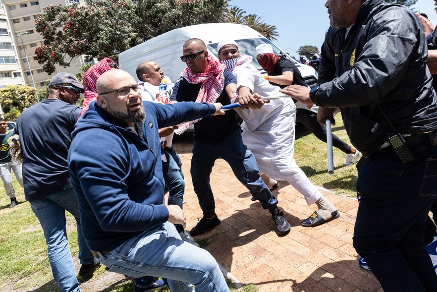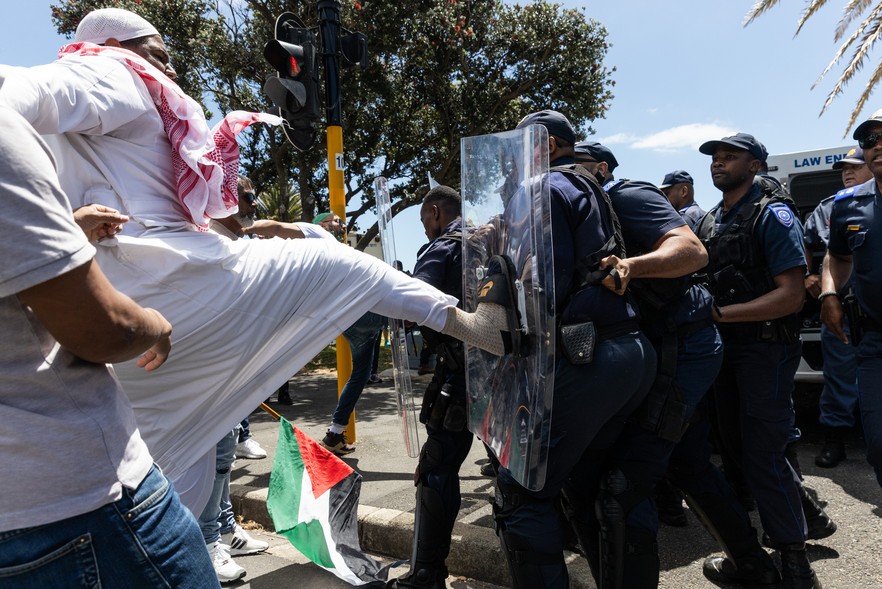 Sunday’s clashes followed a massive but peaceful protest in support of the Palestinian people on Saturday. Tens of thousands of people marched through Cape Town city centre calling for the closure of the Israeli embassy and for the Western Cape government to condemn Israel as it did Russia.
