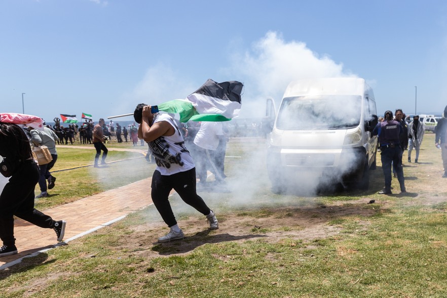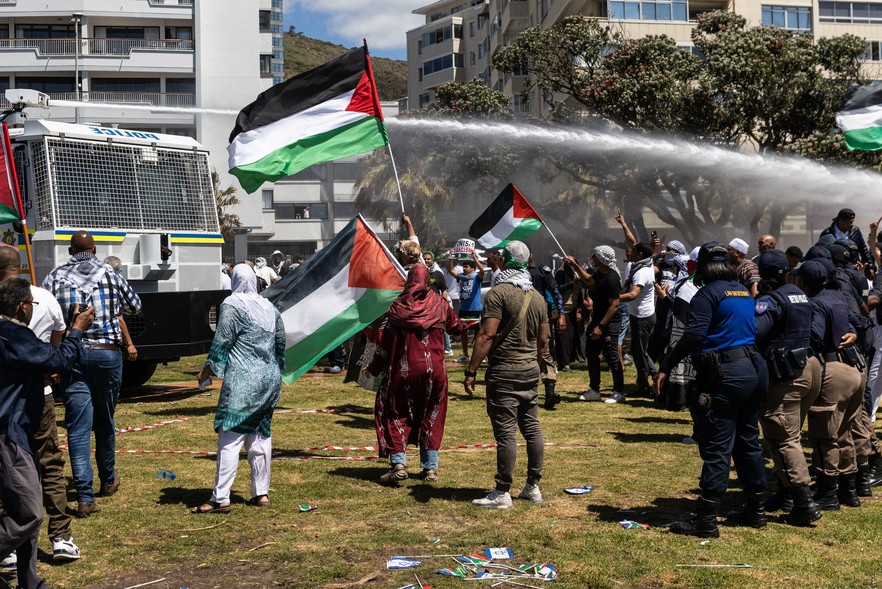 A pro-Israeli protest at the Sea Point Promenade in Cape Town on Sunday was disrupted by pro-Palestinian protesters. Buses of protesters for Israel were sent away after the police started using stun grenades and water cannons to disperse a group of the counter-protesters for Palestine.