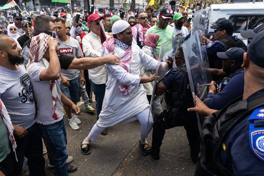 Pro-Palestinian supporters clash with police during a counter protest against Israeli supporters in Sea Point, Cape Town, on Sunday. Photos: Ashraf Hendricks