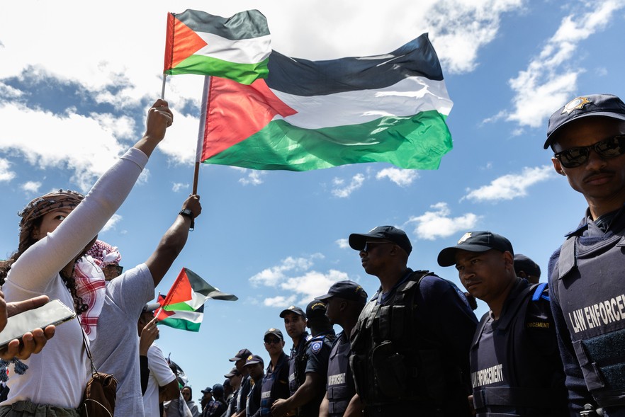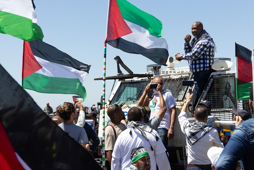 This was one of many protests in Cape Town over the past month in response to Israel’s bombardment of the Gaza Strip. Armed militias from Hamas entered Israel and killed more than 1,400 people, mostly civilians, and are holding over 200 people hostage in Gaza. In response, Israel has bombed the Gaza Strip, killing more than 11,000 people, including more than four thousand children. It has also intensified its years-long blockade of Gaza, often preventing humanitarian aid from reaching the area.