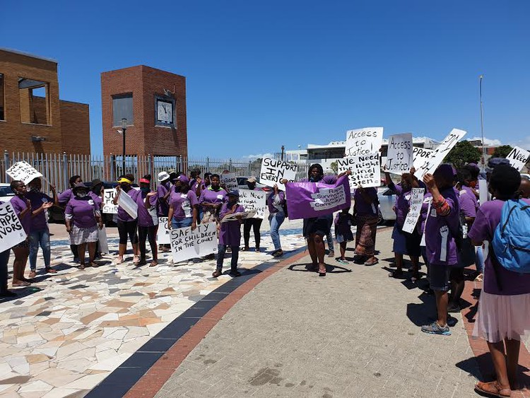 About 40 picketers wearing purple T-shirts sang and danced outside the Khayelitsha court on Thursday, waving placards saying “Support in every court”, “Safety for children in the court”, and “Access to justice”.
