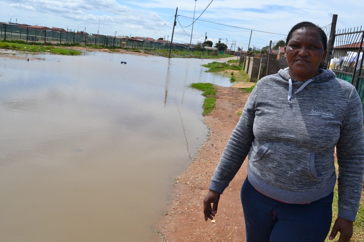 “Our RDP houses often have frogs. And mosquitoes bite us and our children. Sometimes our children slip and fall in the mess and go to school stinking. This mess is right in the middle of our streets and it’s filthy,” said resident Lungeka Williams.