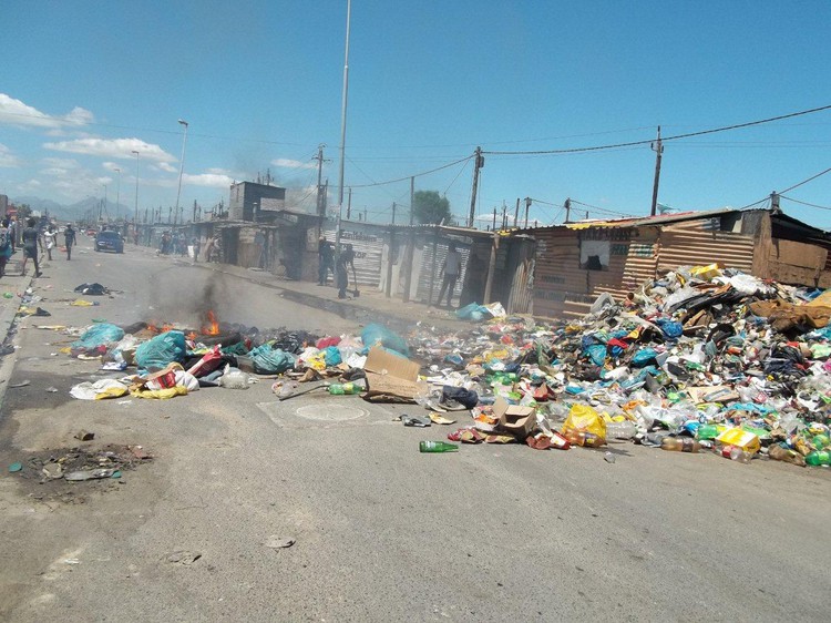 Heaps of rubbish were set alight and used to block parts of Takudi and Skwatsha streets in Kraaifontein, Cape Town on Wednesday. Shack dwellers are demanding that the City provides their neighbourhood with refuse collection services.