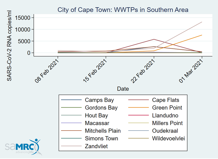 Cape Town’s wastewater treatment stations are being monitored regularly for Covid. You can find the latest results on the South African Medical Research Council’s website: https://www.samrc.ac.za/wbe/capetown.html.