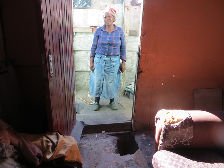 Her neighbour Mlandeli Songelwa is afraid the hole will affect his shack too. “Once the heavy rains erode the sand and widens the hole, my shack will sink into it,” he said.