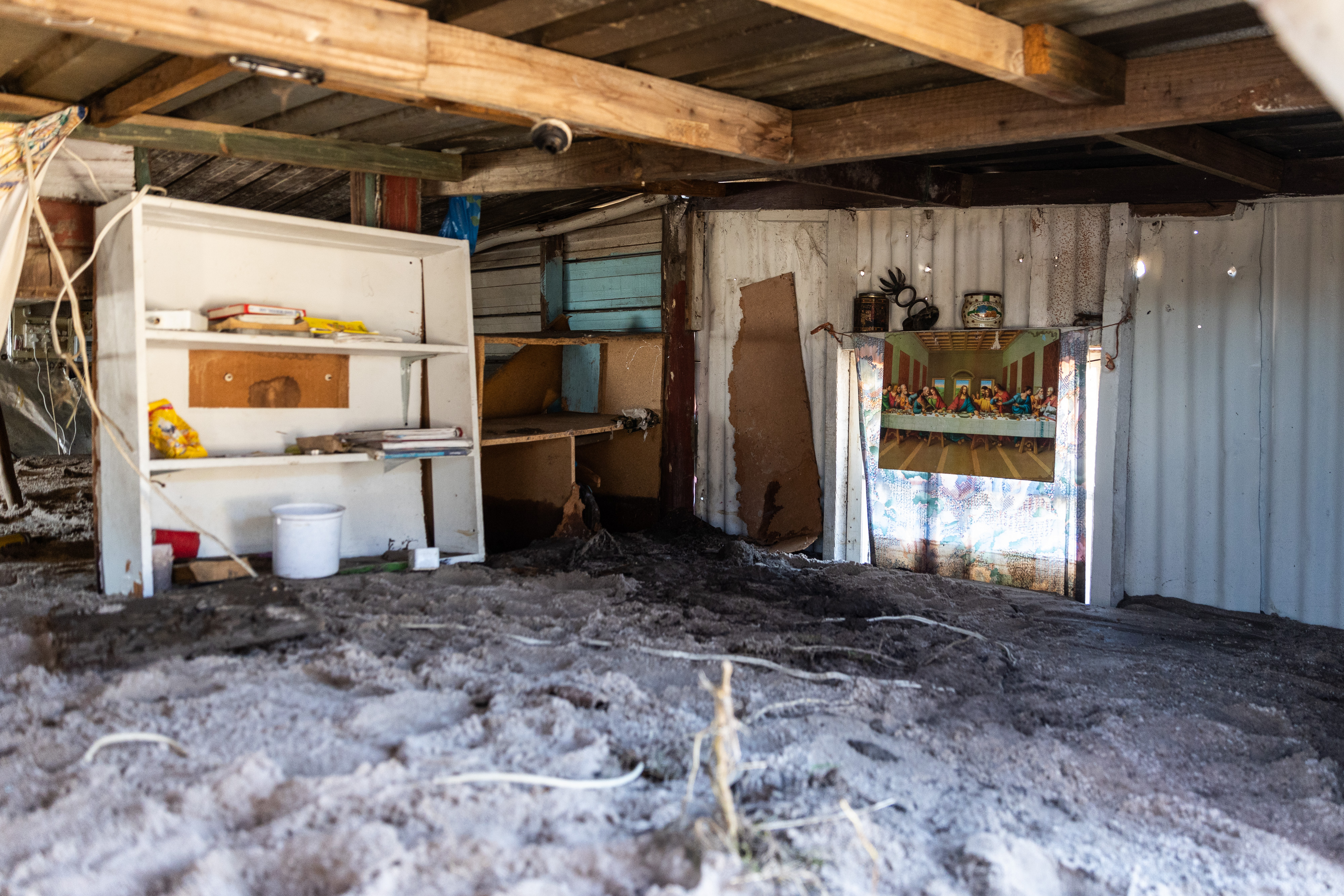 In Rasta Kamp, an informal settlement, homes flooded. In Uitkyk, another informal settlement, homes are buried in mud almost to the roof.