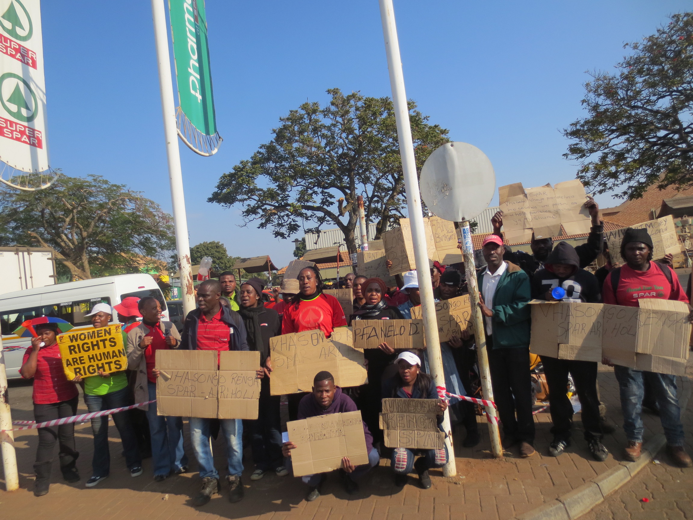 Spar workers in Louis Trichardt, Limpopo, have been picketing along Songozwi Street metres away from the Spar since Wednesday. The 40 or so protesters are demanding a 10% salary increase across the board and improved working conditions.