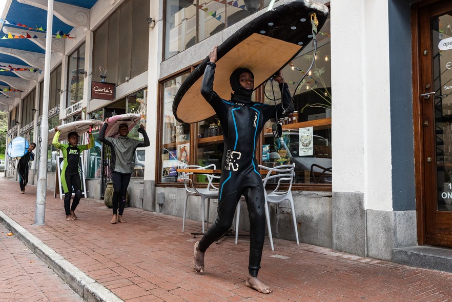 The Local Surf Lounge Academy in Muizenburg, Cape Town, trains young boys from poor communities how to surf and gives them a safe space where they also learn life skills. Photos: Ashraf Hendricks