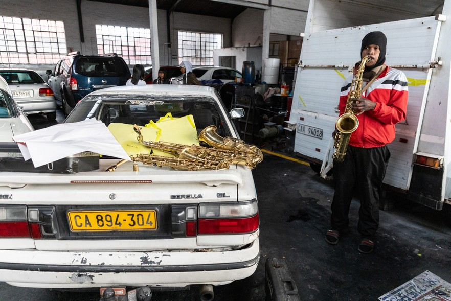 “These kids haven’t got money. That’s why all the instruments belong to me,” says Davids. He bought the instruments with the money he makes from his panel beating shop – Athlone Body Works.