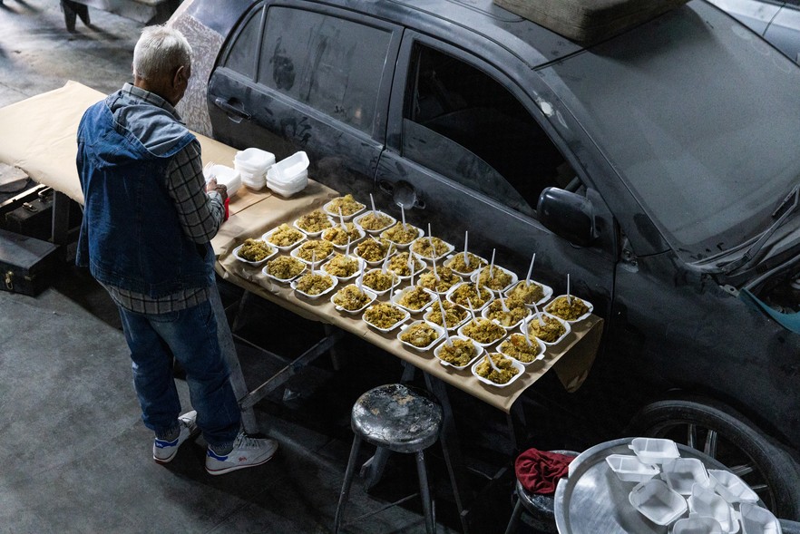 Salie Davids’s wife, Rukeya, cooked a pot of chicken akhni. The ingredients cost them R1,200. The pot is empty by the end of the evening.
