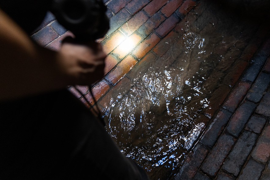 It can get quite humid underground, says Weisse, but on the day we visited there was a cool draft blowing through the tunnel. Visitors are advised to wear a mask because it can be quite smelly underground. When we visited, the water running through the tunnel was clear, but Weisse says it can get quite dirty.
