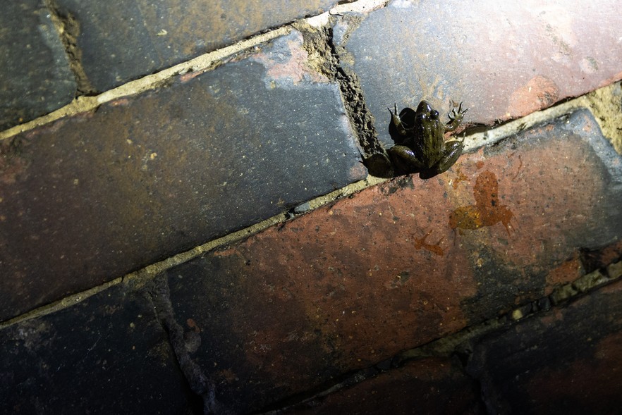 Many critters have made these tunnels their homes like spiders and frogs, like the one pictured here.