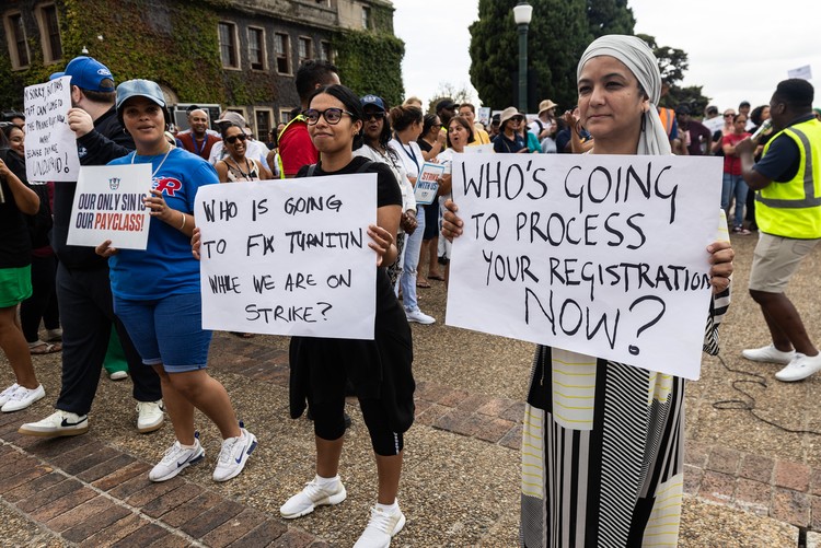Members of the University of Cape Town Employees Union (UCTEU) are on strike. They are demanding a 1.5% increase to 2023 salaries and a 7.5% increase to 2024 salaries, among other demands. Photos: Ashraf Hendricks
