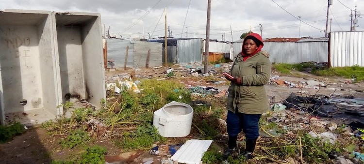 In Lusaka informal settlement in Cape Town there are not enough toilets, drains are blocked, and there is a terrible stench
