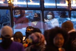 Members of the anti-immigration vigilante group known as Operation Dudula during a protest staged by the group during the G20 leaders summit near Nasrec in Johannesburg, South Africa.