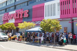 Supporters of the “Hands off our Grants’ campaign demonstrated outside St. George’s Cathedral in Cape Town.
